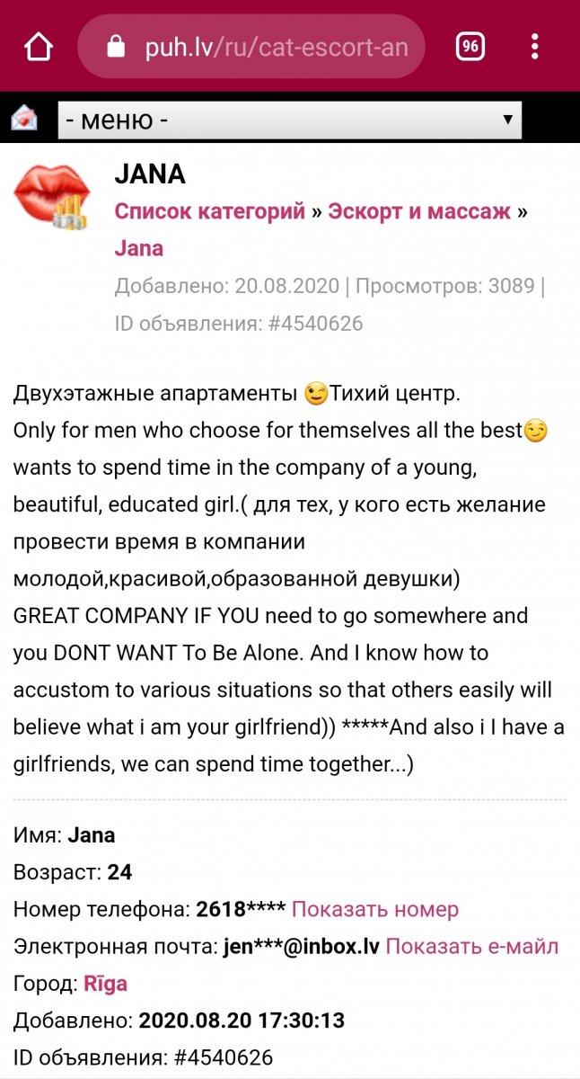 Электронная почта: jen***@inbox.lv Показать е-майл
