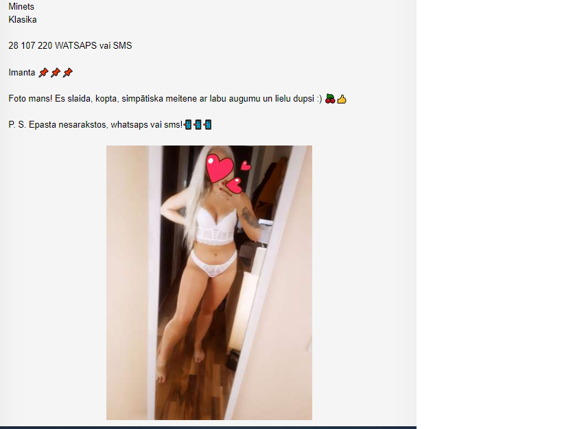 Komukācija/attieksme - 8. caur Whatsapp. Vienojāmies par 7 sarkanajiem uz pus stundu. Nav GFE, kaut ko parunājām, bija nogurusi, prom nedzen, pulksteni neskatās.