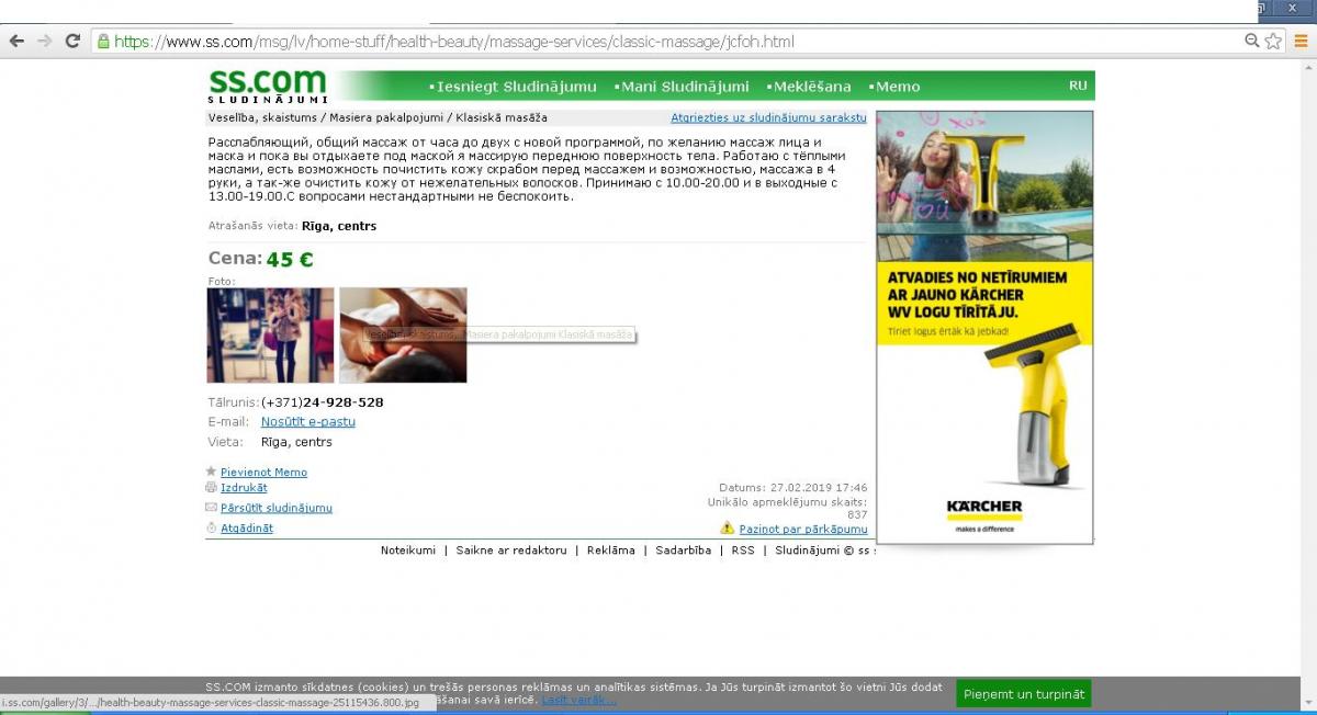 halloschatzi 0 Ierakstīts 2019. gada 6. marts Masaža Rīgā Jauna Ss.com Ierakstīts 2019. gada 6. marts Sveiki kungi! interes masierite no riigas kas sludinas caur pec telefon numura neko neatradu..varbut kads var padalities ar iespaidiem,kas biji apciemot? https://www./msg/lv/home-stuff/health-beauty/massage-services/classic-massage/jcfoh.html paldies ieprieks par atbildi. Link to post