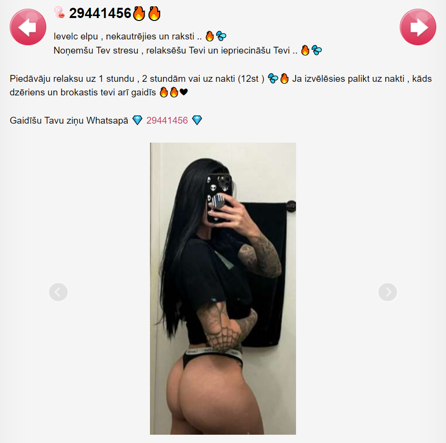 Sludinājums pilnīgs appisiens, prasa pārskaitīt naudu uz kontu. Bildes interneta plašumos neatradu. Aizdomīgi, ka nesen konts ar 1 ierakstu par acīmredzami fake tēmu tikko uzsāka tēmu par ""tetovēto", kurai kontakti pazuduši. Sarakstē sūta acīmredzami pašizgudrotas sarakstes no "vīriešiem" , kas it kā piekrituši pārskaitīt. Un pēc tam rakstījuši, ka Vou, tu gan neesi kā citas, kas uzmet.... Neesiet lūdzu idioti un neuzķerieties.