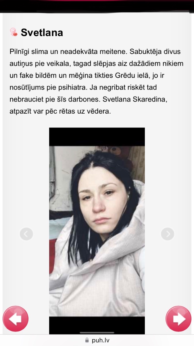 Tās bildes ko viņa nosūta, atbilst realitātei? Biju ar viņu sarakstijies, aizbraucis, bet tad sekoja norunātā laika pārcelšana un protams, ka es negaidīju. Biju nodomājis, ka fake. Komunicē laikam tikai ru, kad rakstiju savā valodā, tad neatbildēja. Man arī nosauca motoru ielu, biju sarunājis, ka viss notiek auto.