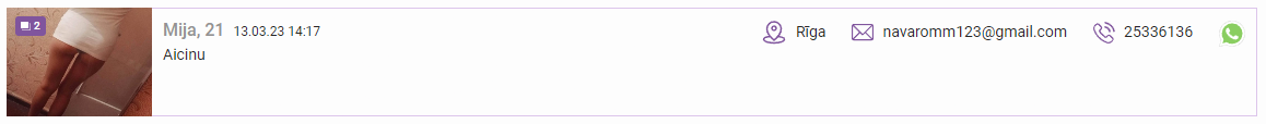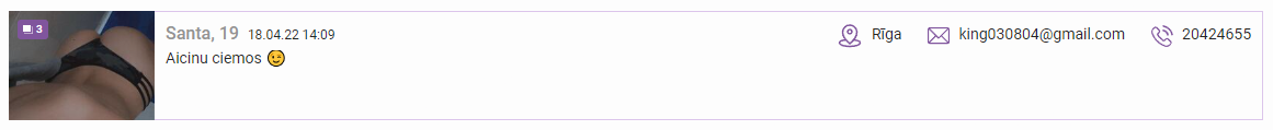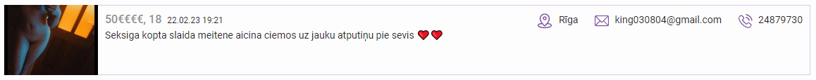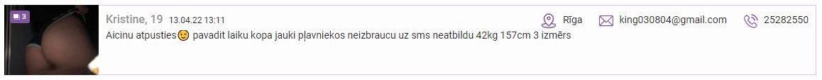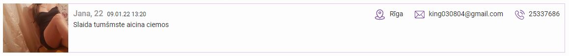 Dāma sludinās aktīvi un regulāri maina numurus (vai varbūt viņai desmit telefoni un katram cits numurs). Pēdējais sludinājums ko redzēju ir ar 20095137