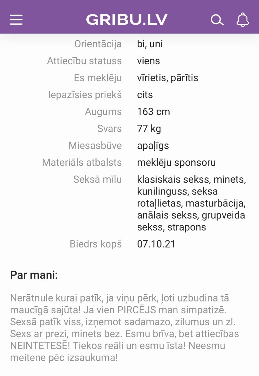 Varbūt kādam ir zināms kas vairāk par šo “darboni” no 4sex.lv? Piedāvā plaša spektra pakalpojumus,augums labs,par seju,protams, gaumes jautājums,bet nekur nevaru atrast nevienu atsauksmi…..