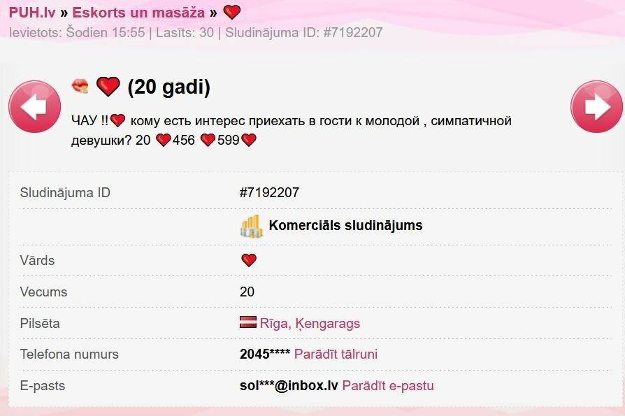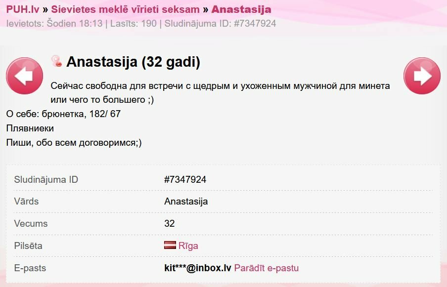 Un kur ir problēma? No vienas viņa abildes iespējams uzzināt dāmas formu/ "svarīgumu", atrašanās vietu (ir dāmai vieta vai jāgādā Tev pašam), cenu, kādā valodā komunicē, kā ar viņu sazināties (epasts, telefons, sarakste).