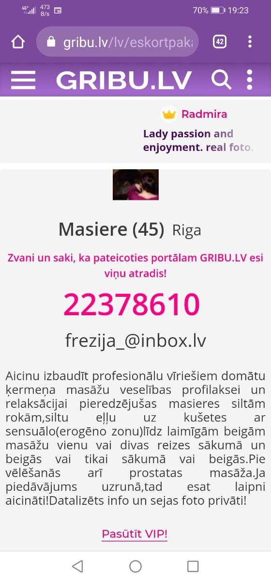 Paldies biedri, skaidrs kad uz turieni nevajag doties, intriga bija apsildāma kušete, kad zvanīju tad ar tā diezgan agresīvi atbildēja par vīriešu masāžu!