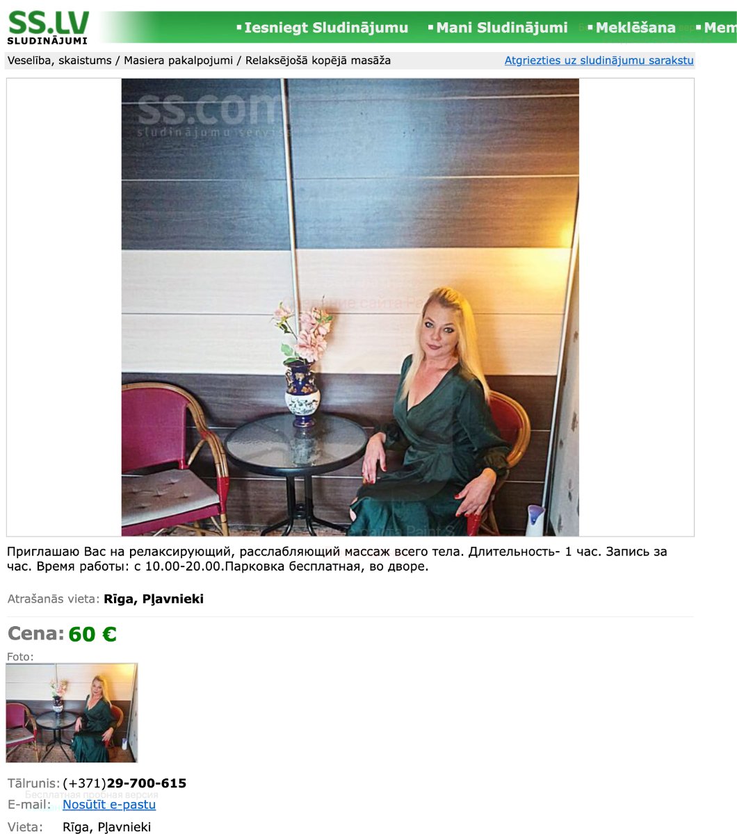 brrr 0 Ierakstīts 19. novembris ss.lv - 29700615 Ierakstīts 19. novembris Ir kādas atsauksmes? it ka kaut kur redzēta, bet nekas nenāk atmiņā Приглашаю Вас на релаксирующий, расслабляющий массаж всего тела. Длительность- 1 час. Запись за час. Время работы: с 10.00-20.00.Парковка бесплатная, во дворе. T. 29700615 Link to post