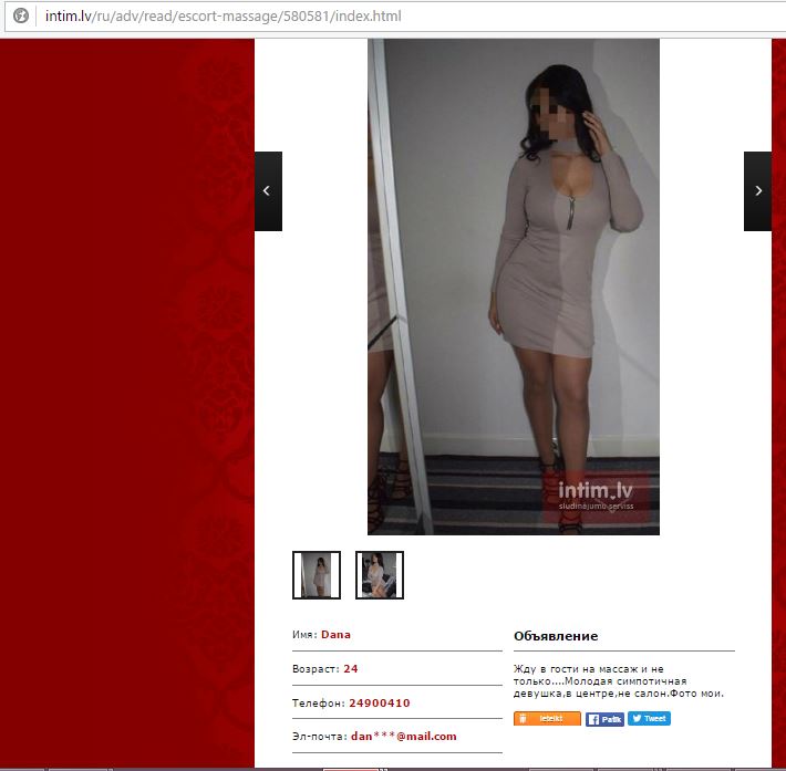Lencorcism 26 Ierakstīts 2017. gada 19. februāris Dana 24900410 Ierakstīts 2017. gada 19. februāris Sveiki, cienījamie biedri! Šis laikam ir no janākiem sludinājumiem, bet varbūt kāds jau ir bijis un ir iespaidi. http://intimmeitene.lv/en/girl/100662-Dana-24900410 Sludinājuma teksts: Нежный расслабляющий массаж с приятным продолжением...Фото мои 100%.Только звонки.Центр,не салон Sludinās gan puh.lv, gan intimmeitene.lv, gan gribu.lv, gan intim.lv. google search Iepriekš it kā nav apspriesta. Vismaz forumā neatradu. Vēl sludinās kā Dana Real Foto .Nr.: 24900410 Link to post