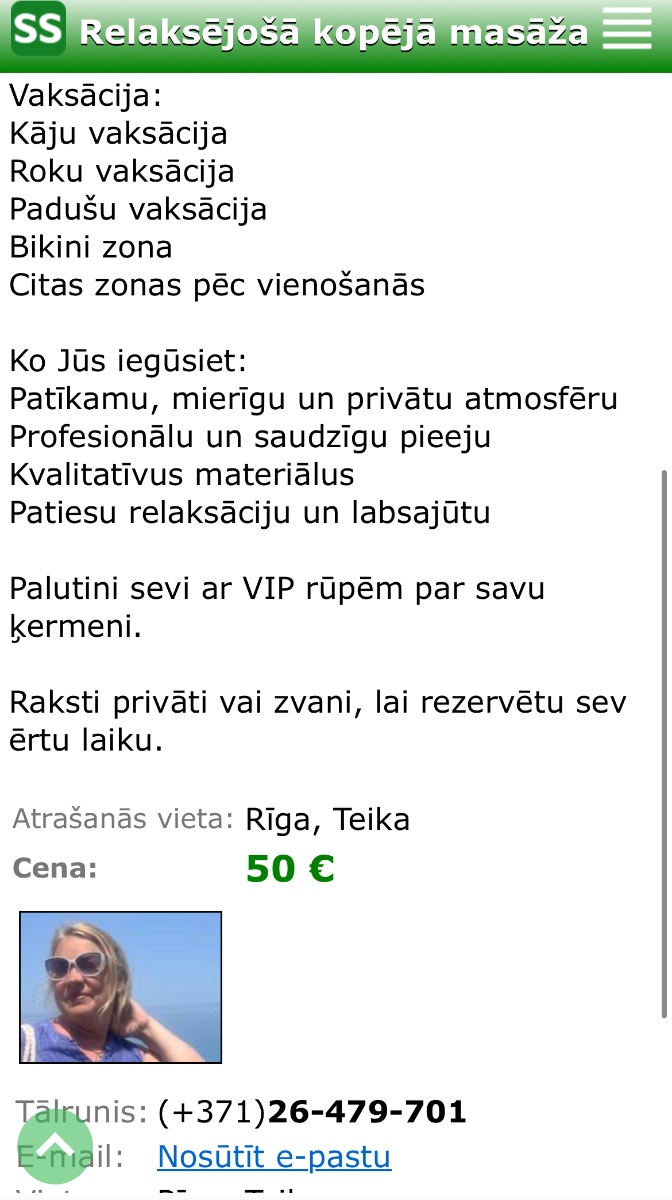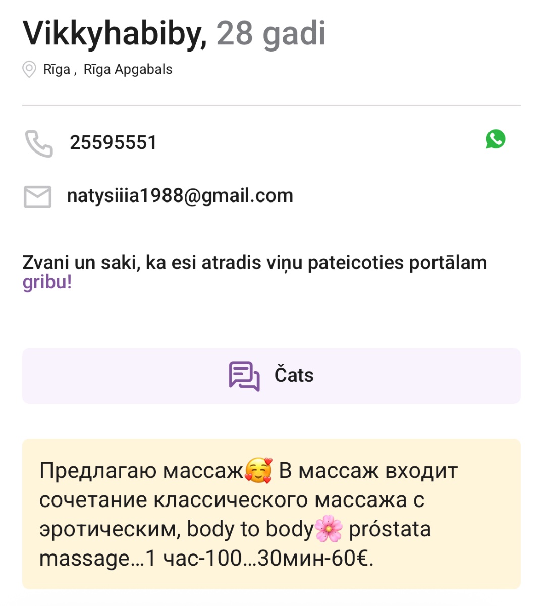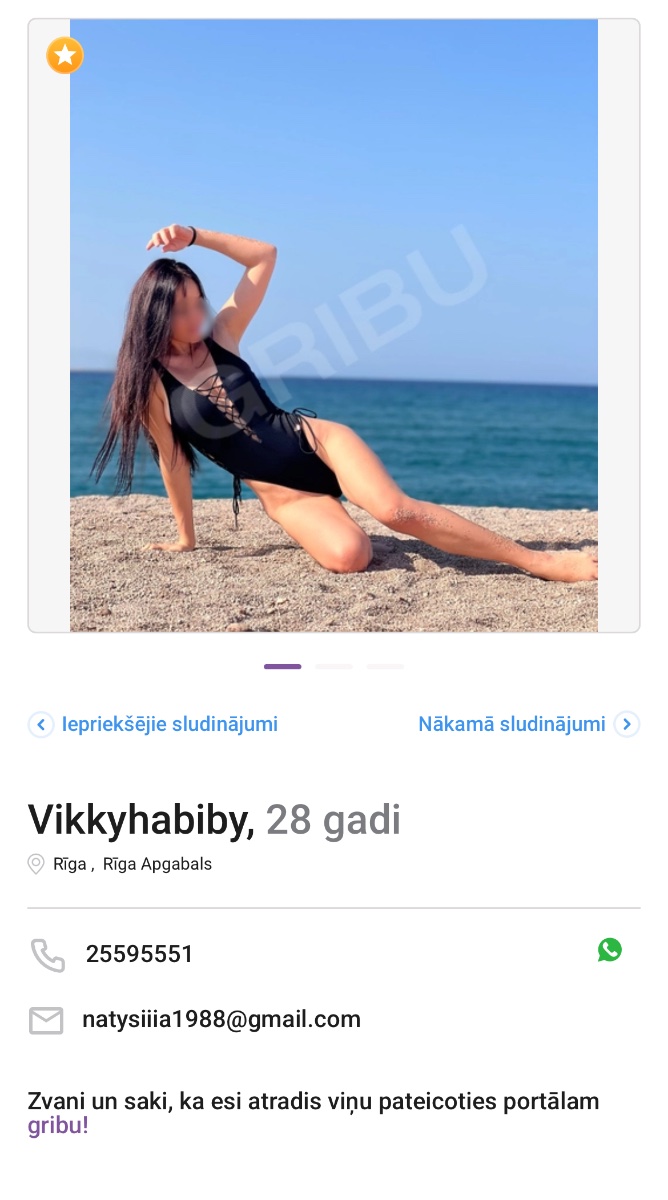 Labas dienas! Bildēs līdzīgas, bat ā nav tā, jo viņa agrāk sludinājās pie Purčika tirgus, biju pie viņas, atļāva ižģērbties,sex neprasiju, bet cik sapratu viņa nesniedz, bet jebkurā gadijuma fokusējas uz Tevi!