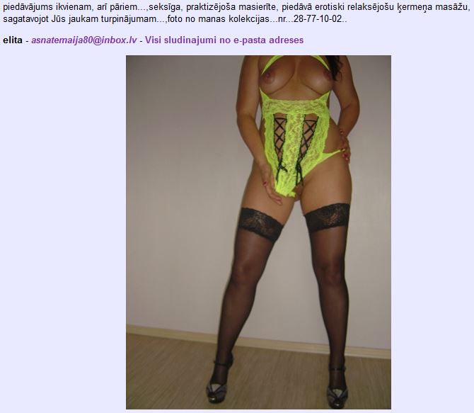 Palasot atsauksmes par šo masieri un to kā strādā šad tad mēģināju sazvanīt. Domāju jau ka ignorē nezināmu apsvērumu dēļ, bet nu beidzot izdevās sarunāt vizīti. Apartamenti zolīdi. Viss tīrs jauks un kārtīgs. No meisterītes puses šķita stipra vienaldzība, pat acīs neskatījās. Necilvēcīgi lietišķi. Masāža ļoti spēcīga, īsta masāža! Tur nav ko piebilst. Nekā relaksējoša vai erotiska... pēc masāžas devos uz dušu un viņa pa to laiku jau ātri atrada kaut kādu krievu seriālu pa TV kuru laikam biju norāvis viņai baudīt. Nekādas draiskas dzirkstelītes nevienā acs kaktiņā. Var jau būt ka viņai augums skaists. Masēja kitelītī (halātiņā), ne jau medmāsiņas...