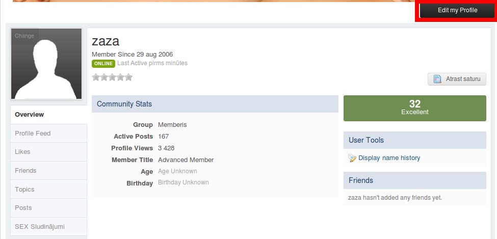 Ejam uz savu profilu un spiežām pogu [Edit my Profile]