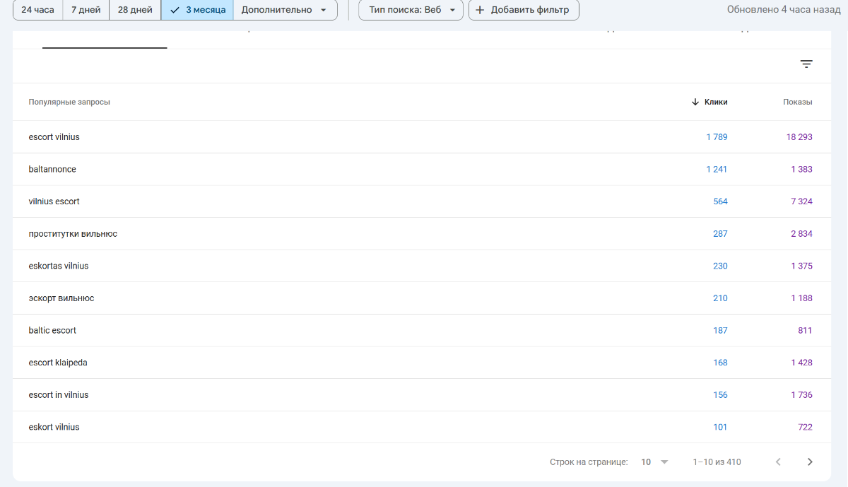 В целом в месяц есть 1500 посетителей, но как же сложно выйти на первую страницу по запросу "escort (city)"...