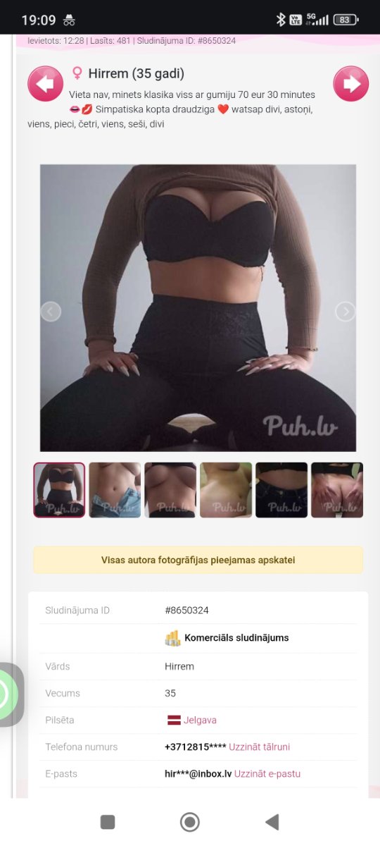 Izskats - ķermenis - 8, seja - 6. Ļoti labas C/D naturālas krūtis, labas stingrs dibens un cieša peža, pati kopta un smaržīga, liekā svara nav. Kaulaina nav. Smuki bija saģērbta,