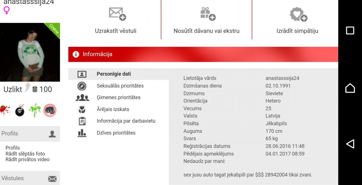 Hannibal 59 Ierakstīts 2017. gada 25. februāris Valmiera / Cēsis / Smiltene Ierakstīts 2017. gada 25. februāris varbut kadam ir ligatnes meicas nummurs?4sex.lv tagad izskatas ka tapati. KarumnieceMazina Noteikti apalīga.Nu tur svars un augums. Bet reizēm tādas arī foršas. Link to post