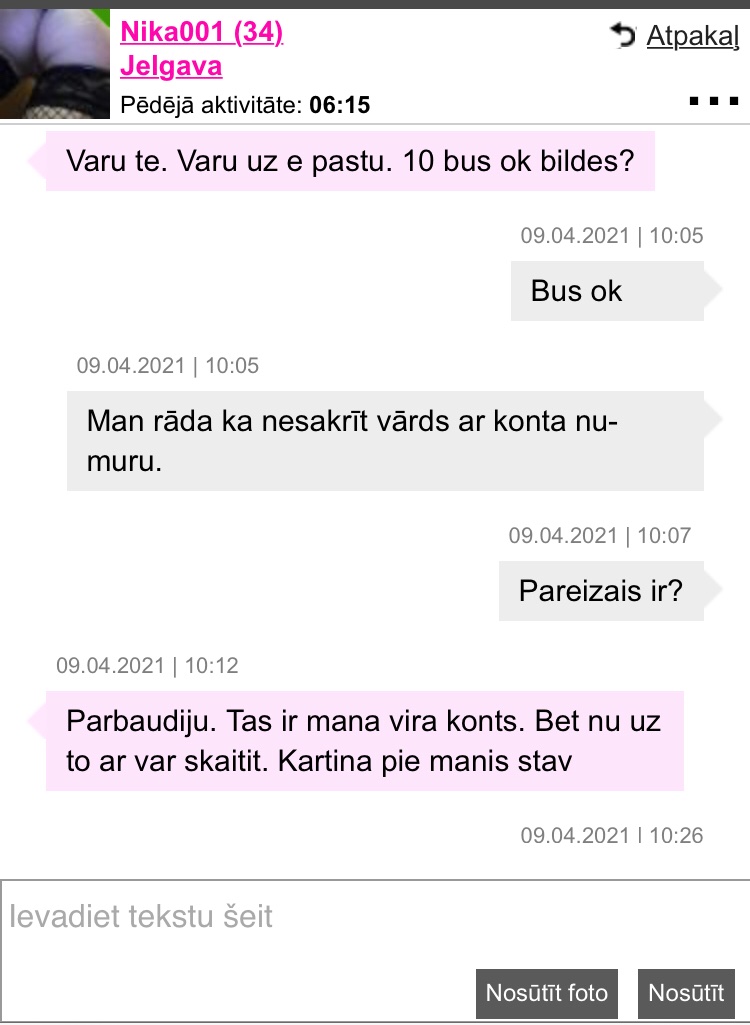 Prasu cik maksā un saņemu atbildi 20€ par dažām bildēm, protams saku okey, dod kontu un tad sākās joki...
