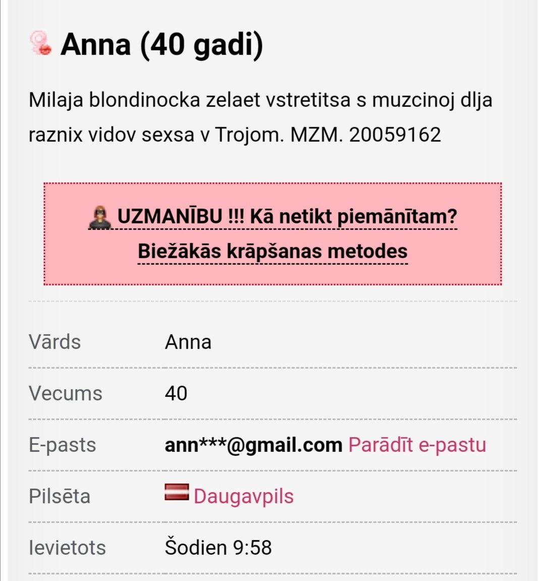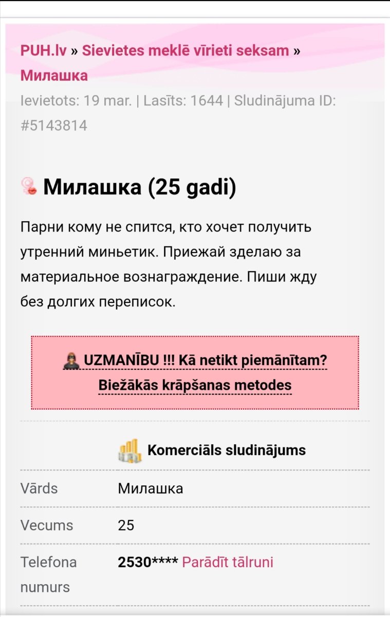 Mixaqu 1 Ierakstīts 2021. gada 21. janvāris Daugavpils 2021 Ierakstīts 2021. gada 21. janvāris pirms 2 stundām, Mochart teica: Кто такая, чем знаменита? 27342226 (29 years) 2734**** Show phone number Секса любивая девушка, желает встретитса с обеспечиним мущиный. Местечко йесть! Поедлогаю-(сексик+минетик-40-1часик) Фото не висылаю! " https://puh.lv/en/cat-girls-looking-for-sex/ad-27342226-seksa-lyubi/5012194.html Тоже интересует. pirms 18 stundām, znakq teica: С Izabella с пух, реально или это парень? Смс пишет, а звонки ни в какую... Номер можно? Link to post