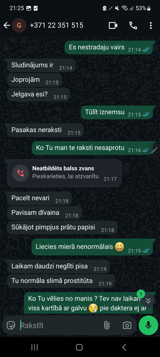 Es šajā forumā parādu tikai tiešām bīstamu cilvēku numurus- varmākas , krāpnieki , neadekvati , lai pabridinu citas