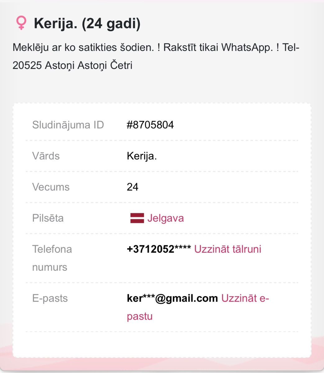 Milnieks35 2 Ierakstīts 2025. gada 12. augusts Madona 2025 Ierakstīts 2025. gada 12. augusts Vēl viens slimais prasa kontaktus,kaut tāda persona tur nedzīvo un neliek sludekļus. Link to post