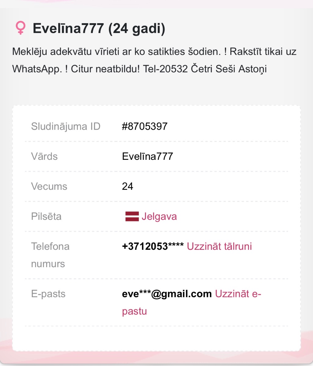 Milnieks35 2 Ierakstīts 2025. gada 20. augusts Madona 2025 Ierakstīts 2025. gada 20. augusts pirms 1 stundas, janexs teica: Jus tik stāstat kura kur pieņem,bet tak ludzu padalaties arī ar kontaktiem Nav tādu sludekļu , vienkārši Raganai zobs uz to sievieti Link to post