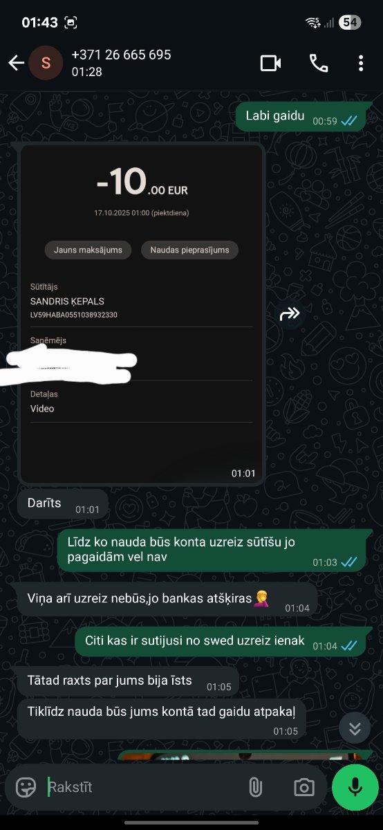 Sveiki. Nezinu vai šis cilvēks šeit ir kaut ko par mani rakstījis bet gribēju pateikt to ka šis cilvēks grib izspiest no manis pēdējo naudu saka ka ir atsūtījis naudu bet kontā nekas neienāk tajā pašā laikā citi sūtot naudu no tās pašas bankas uzreiz ienak nauda un uzreiz pēc saņemšanas sanem to ko prasa bildes / video. Beigās vel piedraud ar policiju un uzdod sevi par policistu. Es. Vienmēr esmu sūtījusi video/bildes kad atsūta naudu nevienu reizi neesmu kādu apčakarējusi. Viņa vārds SANDRIS ĶEPALS