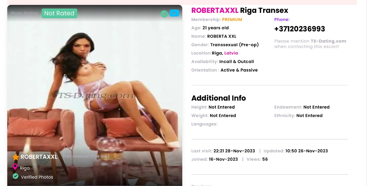 Так смотрите на дату поста,я был в конце ноября,в Ригу трансы приезжают на неделю,две,реже кто и на месяц останавливается,есть такие кто в Риге бывает только один раз,есть такие кто приезжает регулярно,номера берут предоплатные,как уезжают,местный номер отключают,используют другие,в каких странах они находятся,просто если есть желание встретится с трансом в Латвии,надо сначала посмотреть на специализированных сайтах интимных знакомств,иногда даже приезжают известные порно актрисы трансы,я первый раз именно с таким трансом и встречался,весной 2015 года в Риге была Sabrina Suzuki,моя первая встреча с трансом,понравилось,с тех пор переодически с ними встречаюсь.С Сабриной я охренел от её размера члена,заявленно 24 см,он действительно огромный,это был ураган страсти,где она меня знатно поимела во все дыхательные и пихательные,и больше всего я кайфанул от её фокуса в конце,она положила меня на спину,задрала ноги мне вверх и трахая меня в попу,одновременно сосала мой член,пока я не разрядился ей в рот,и её член в моей заднице только усилил оргазм.