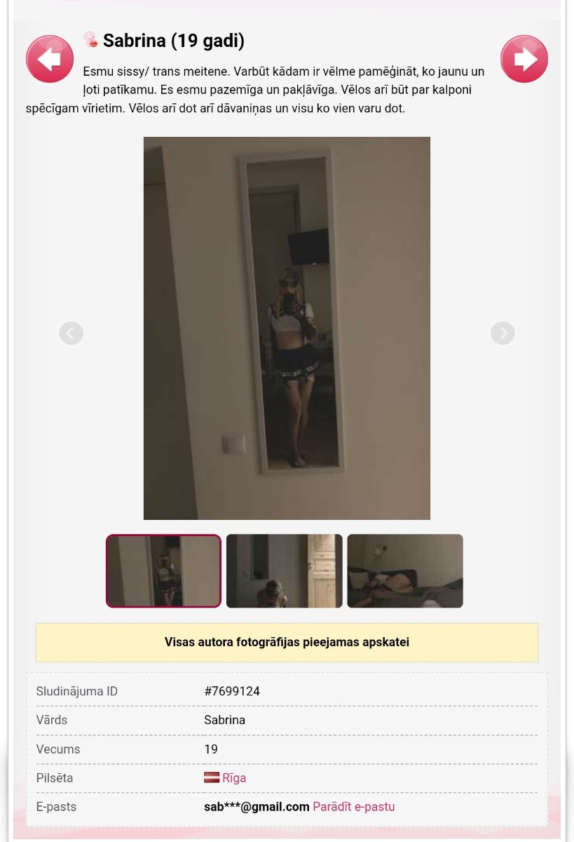 Laimis2023 66 Ierakstīts 2024. gada 28. februāris Sabrina (19) sissy/trans meitene Ierakstīts 2024. gada 28. februāris Sludinājuma minēts, kā Sabrina grib atrast spēcīgu vīrieti. Viņa ir pazemīga un pakļāvīga, varētu būt par kalponi ārpus gultās. https://puh.lv/lv/cat-girls-looking-for-sex/ad-esmu-sissy_trans-mei/7699124.html Link to post