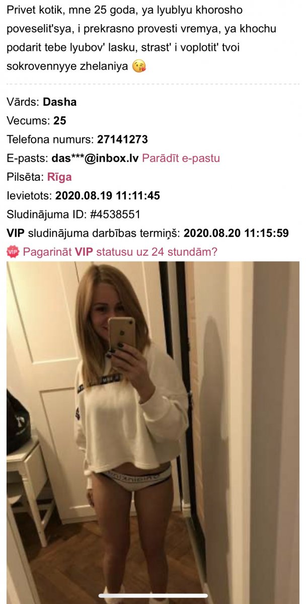 BobbyD 67 Ierakstīts 2020. gada 19. augusts Dasha (25) 27141273 Ierakstīts 2020. gada 19. augusts Sveiciens visiem! Vai kāds kurš ir bijis var iedot kādu atsauksmi par Dashu ( 27141273 ) ? Vienu atsauksmi uzgāju, bet tikai par to, ka bilde nesakrīt. Cenu diapazons kā jau importam, taču meiča bija neatsaucīga komunikācijā, tādēļ svārstos starp iet vai neiet. Link to post