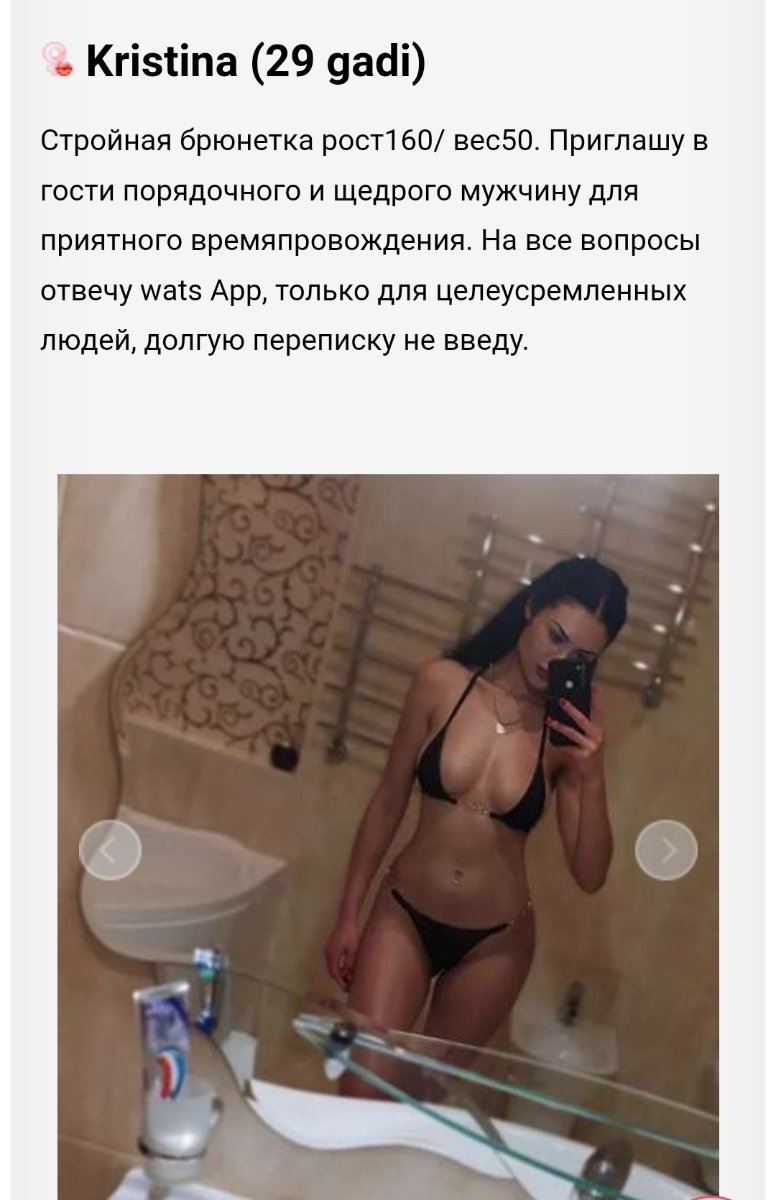 Hei hei. Domāju aizčapot pie šīs. Rakstu ziņu, šī zvana Whatsapp ( vispār pēdējā laikā jau ierasta prakse) kāda pat atļaujas video zvanu uzmaukt), tad norunājam, ka šī pēc 40min atzvanīs. Ok. Es šai vēl balss ziņu ierakstu, ka iešu tikai tad, ja būs tā pati, kas bildē. Ok, pēc 20min atzvana, apjautājās kādas manas vēlmes. Šī pasaka, ka atsūtīs savas bildes. Ehhh, kā ierēcos - atsūta vienu vannā, kur pakaļgals redzams, otru kur pludmalē kaut ko vārtās pa 50m, ka nevar mordu redzēt.