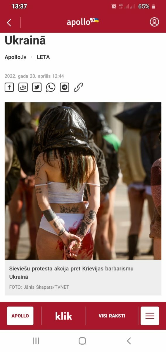Redz kā ir! Es neatbalstu ne karu, ne kādu citu vardarbību!!!! Bet konkrēti šī attēlā redzmā būtne jau vairākus gadus nodarbojas ar prostitūciju rīgā. Protams lai to dara. Katram savs. Bet kad sākās karš ukrainā, tad šī pati būtne aicināja soc tīklos ziedot ukrainai. Protams ar savu bankas kontu vārdu un uzvārdu. Kā redzams ziedotāji bijuši daudz, jo meitene pēc tam izklaidējās berlīnē, parīzē, spānijā. Tā teikt ceļojumu tūre pa eiropu! Forši! Tagad visi ziņu portāli ar viņas pakaļu. Un mūsu valdiba tik slavina meitenes, nemaz nezinot patiesību! Stulbi ne!?