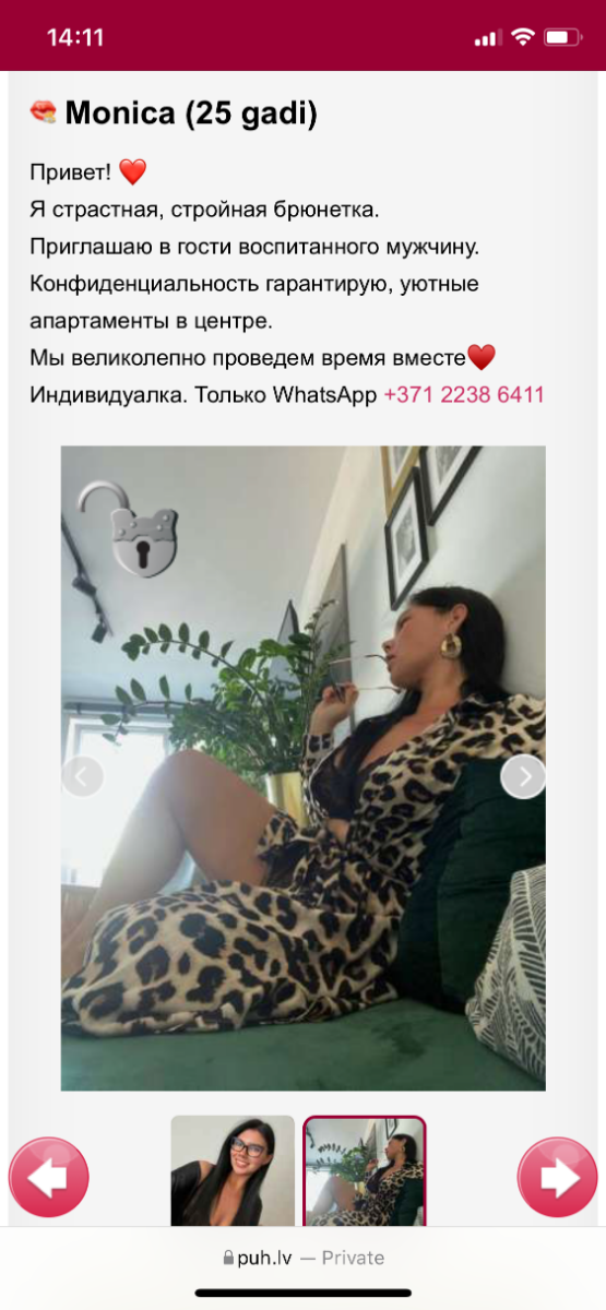 Es personīgi paliku ļoti apmierināts. Tagad viņa ir prom. Solīja atgriezties Marta sākumā ar citām bildēm, bet to pašu telefona Nr.