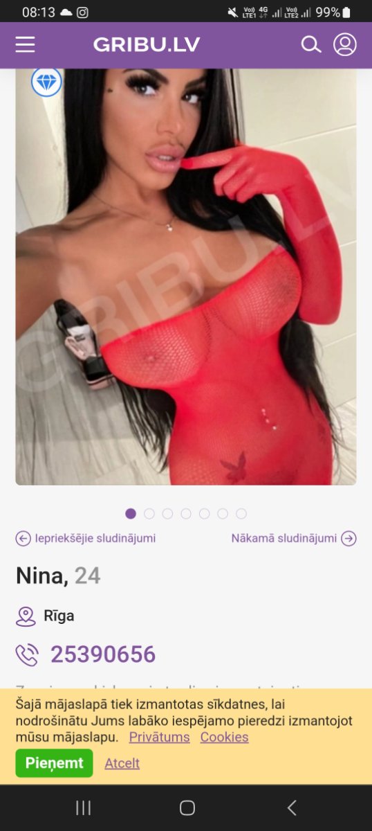 priviet vsem:)krasivaja, seksualnaja brunetochka, priglashaju K sebe V gosti, mogu priehat I K vam!delaju raznij masaz, oralnij, klasika, uniformi, dominacija, PO bolshe info raskazu PO telefonu. nachozus V centre rigi, budu V rige tolko segodnia I zavtro!otvechu tolko NA zvonki, pozalujsta zvonite ZA raneje... imeju krasivuju podrugu toze:)