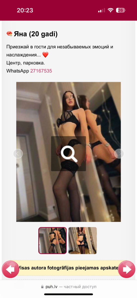 Biju uz pus stundu. Takse 80/130 ir arī visādi dopi. Gadi aptuveni 20-22, var teikt atbilst. Pie mums jau bija, bet sen nav redzēta. Pieņem Merķeļa ielā, ir arī draudzene kaut kur blakus. Bildēs izskatās slaida un gara, bildēs viņa, bet fotogrāfam 10 balles vai nu kaut kā izstiepa tās bildes. Faktiski maza auguma, līdz 1.6, noteikti nav tieva, viss savās vietās, ļoti tvirta. Orālais vidējs, nav nekā īpaša, kompresija laba, var just, ka meitene māk arī ar to operēt.. Sākuma diezgan kautrīga, vizuālā var teikt ka nav, acis ciet, bet figūra gan laba. Līdz GFE viņai tālu, diezgan steidzās. No plusiem, laba vieta, dvieļu izmērs beidzot ok, figūra ļoti laba, punktuāla, bez operatora. No mīnusiem, nav tik atvērta cik gribētos, steidzās visos procesos, nav acu kontakta, 8 sarkanie par pus stundu ir vairāk, nekā piedāva tirgus šobrīd. Šajā nedēļā noteikti ir no kā izvēlēties un šis variants no visām nav tas labākais, bet pieredzei ir ok 😁