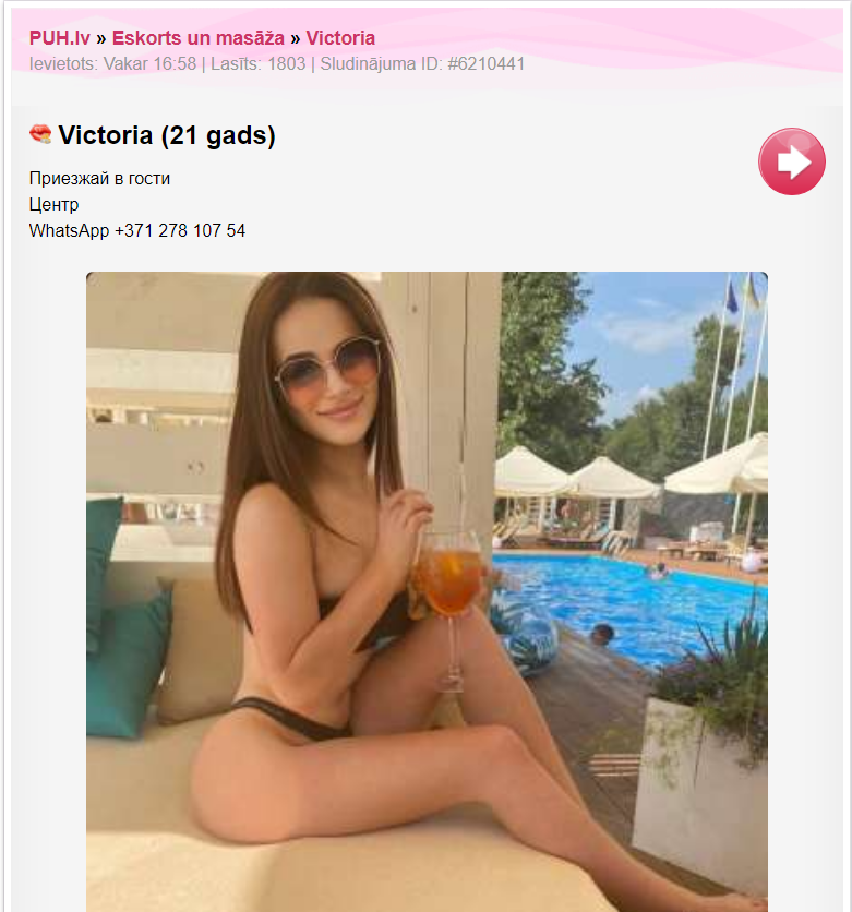 Atradu puh.lv kur daiļava sludinājās uzrunāja rudie mati. Saziņa caur whatapp krievu valodā takse tika noteikta 0,5h/3 zilie 1h/ 2 oranžie.