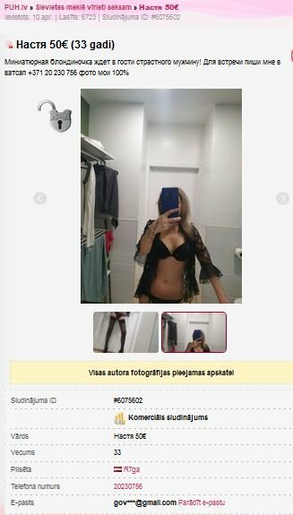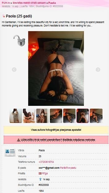 Atskats par tikšanos vakar pēc intim sludinājuma (iespējams, ka importa dāmu tēmā jau bija, bet pēc tel. Nr. neatrada):