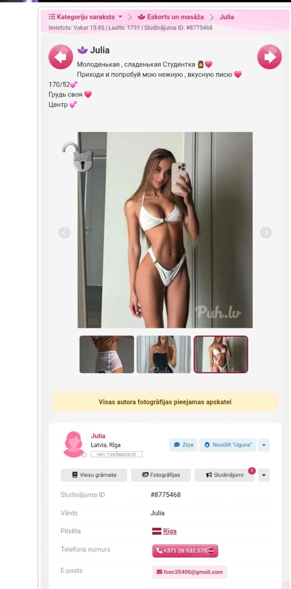 Biju pie viņas vakar atkal. Adrese tā pati, cits dzīvoklis. Pie gultas tagad spogulis👍 viss līmenī,profesionāli un jutekliski! Izskats neliek vilties! Šoreiz bj paņēma owo variantā,kaut nejautāju,forši! Varbūt tāpēc, ka biju uz ātro sesiju,likās ka steidzina- davai no aizmugures,uz dušu? Sāku nē,vēl šādi un mazliet vēl tevi pabaudīšu. Nav kategoriska! Pati arī teica ,ka bildes nav viņas! Nākamreiz sarunājām tikties citā valstī,kur arī būšu!