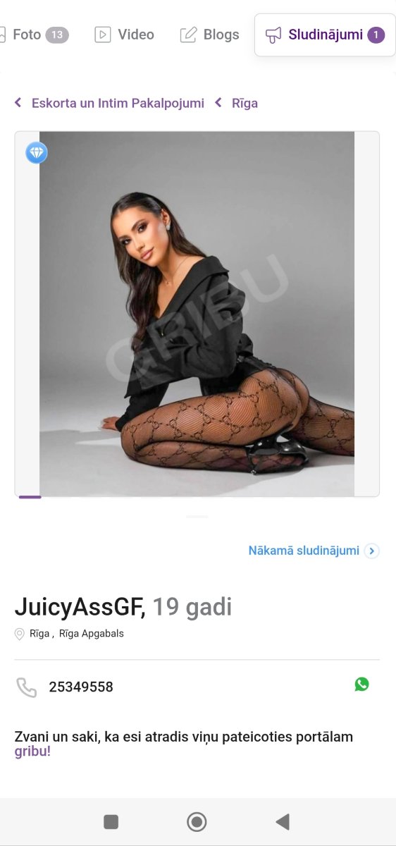 P.S. tajā pašā gribu.lv lapā ir dāma ir nicku "topsportbabe". Abas liek sludinājumus ar minūtes starpību. Arī ļoti simpātiska, atsūtīja tāda paša tipa attēlus ar "pierādījumu". Varbūt kādam no džigitiem ir vēlme aizbraukt to otru notestēt. Pirmā man teica, ka būs tikai līdz 13.tajam Rīgā, tāpēc pieļauju, ka tā otrā arī.