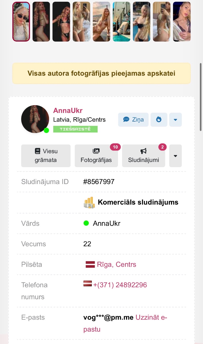 Biju. Takse - 200h par 1 stundu. 30 min pat nezinu cik. Kārtīgam un labam vīrietim MBR, par tējas naudu. Attieksme ļooti laba, var teikt GFE. No pirmiem sarakstes brīžiem koķetīga, uzreiz atsūtīja savu video, pat man neprasot. Bildes atbilst, skaista. Laba figūra, neliels augums. Pati no Ukrainas. Stenēja un komplimentēja, gan jau aktiermāksla, bet ļoti ticama. Sagaidīja smukā vešiņā. Īsumā - iesaku, kam gribās tādu koķetīgu GFE.