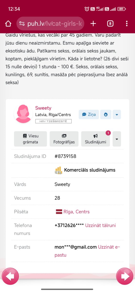 Ok pa laikam puhā ir sludinājums.Latviski un krieviski, Monika 28gadi. Rakstot uz e-pastu saruna pāriet uz angļu val. Concan, lai labi kūpinās uz Tava locekļa!