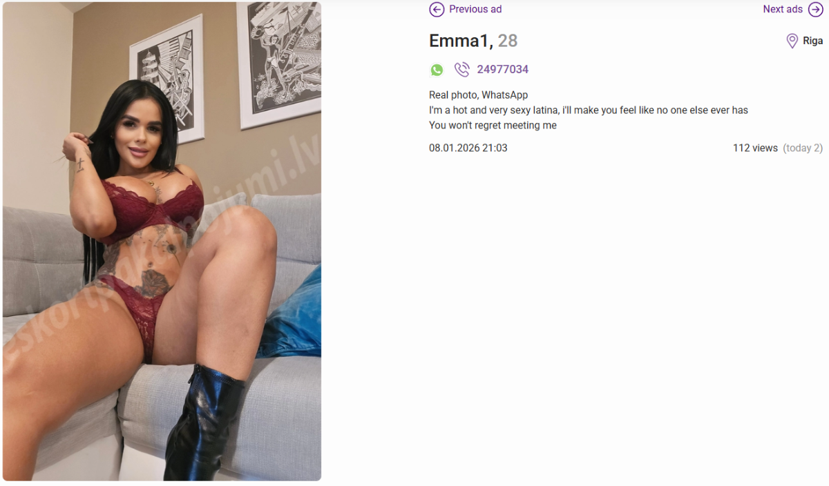 Pārsteigums nebija arī ieraugot meiteni, jo tā patiešām bija sludinājumā redzamā sieviete. Protams, ka fotosesijas fotogrāfijas ir viegli šopētas, bet selfijiem atbilst 100%. Sagaidīja apakšveļā un augstpapēžu kurpēs. Runā perfektā angļu valodā. Pieklājīgi lietišķa, neko lieki nerunāja, jo man pašam īpaši neinteresē pļāpāt. Pirms procesa tiek palūgts nokārtot formalitātes, iedots dvielis (liels, balts, tīrs un sauss) un nodota instrukcija, ka vannas istabā pie spoguļa atrodas mutes skalojamais līdzeklis un glāze, kas jāizmanto.