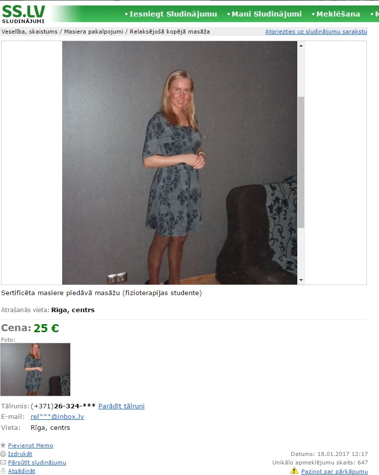 pasaulesnaba 76 Ierakstīts 2017. gada 28. novembris Masāža Mārupes Pusē Ierakstīts 2017. gada 28. novembris Pie šīs masieres esmu bijis gan uz muguras, gan uz relaksējošo masāžu vairākas reizes. Masāža kvalitatīva, nesteidzīga. Dzīvoklī viss tīrs, vannas istaba labi iekārtota. Uzskatu, ka dzīvoklis ir viens no labākajiem, kur esmu bijis. Duša ar silto ūdeni ir (ziemas laikā tas aktuāli), dvielis tīrs un sauss. Kaķi neredzēju. Masierei simpātiska, kopta ar labu figūru. Gadus nevaicāju. Kas attiecas uz bildēm man vienalga, lieku akcentu uz attieksmi un masāžu - ar to viss ir kārībā.Ja, galvenais ka dušā ir arī siltais ūdens, jo parasti pie masāžistēm par 50eur nav!!!! Link to post