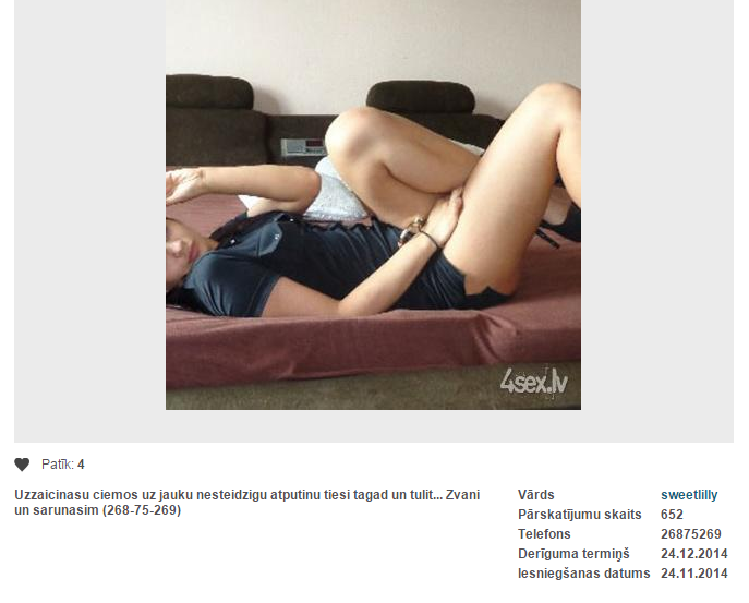 jelgavnieks 11 Ierakstīts 2014. gada 5. decembris Amanda,sweetlilly 26875269 Ierakstīts 2014. gada 5. decembris sveicināti kungi! ir interese par šo personu. meklētājs atbildi nesniedza! Link to post