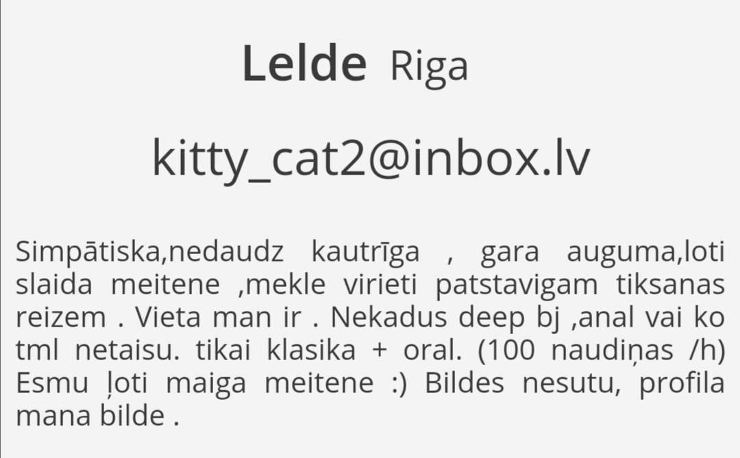 Kaut kur noteikti ir tēma par augstāk minēto... gadus 5 atpakaļ aktīvi reklamējās un atradās Āgenskalna rajonā. Darbojās vēl arī periodiski duetā ar blondo, kura tajā laikā solo variantā bija Imantā un tagad laikam Ziepniekkalnā, slinkums meklēt kura.