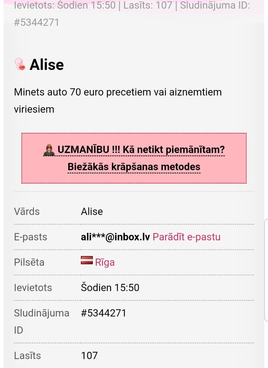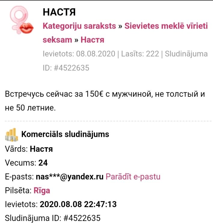 Кто нибудь встречался? Коммуникация странная. Адрес называет Alberta iela 10. Возраст в объявлениях меняется. Голос стремный.