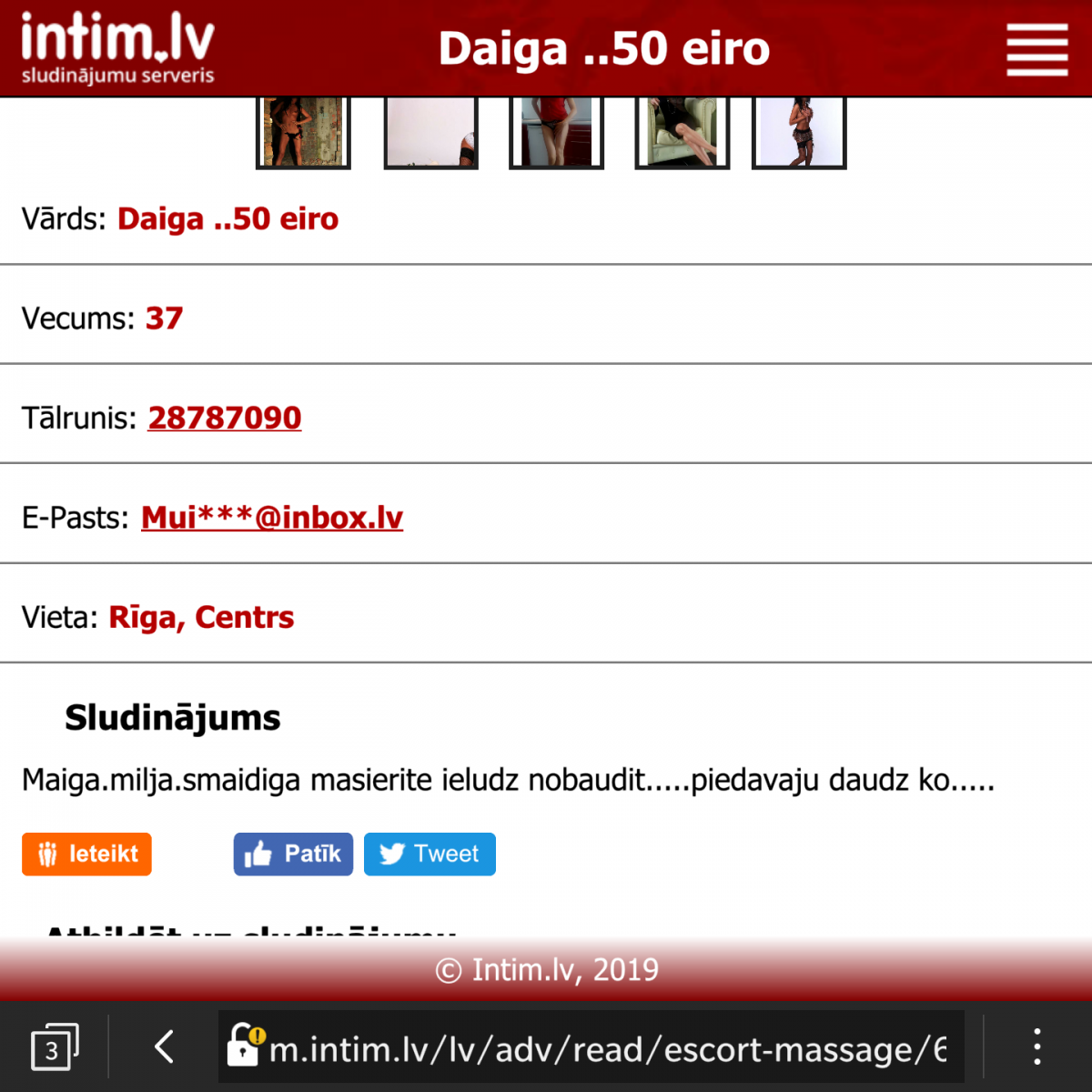 Plds par info,bet tas nav tas kas mani intereseja,un patik man viss. Runajot par bildem,ipasi sejas vai kadas darbones privatiem kontaktiem soc tiklos,ir te ari loti daudz normalu vecu, kuriem ir sada info un ne tapec, lai santazejot izspiestu bezmaksas sex utt, bet gan tpc lai parliecinats vai gribi vinu vai ne. Jo ka zinam vinai nevari uzzvanit un tikties, ir japierakstas ka pie daktera+ pasam japarupejas par vietu un kopejas izmaksas par jautribu parsniedz 100 eur, tikai ir viens bet,konkreta meitene ir vecuma kategorija 30+, un par tadu summu jau var atrast jauku meicu vecuma kategorija 20+