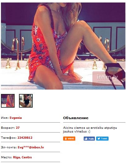 Telefona numuru forumā neatrod, bildes Google atrod, bet tikai tajās pašās intim.lv un girlsofriga.lv - tā kā (un arī spriežot pēc kvalitātes un izteiksmīgas kompozīcijas) var būt pat īstas.