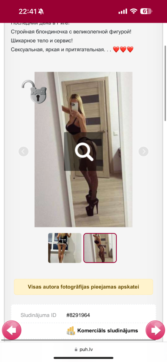 Sveiki biedri. Vēlētos noskaidrot atsauksmes par šo dāmu. Vai kāds ir bijis? Pēc bildēm izskatās labi, atsūtīja cenas, liekas pieņemamas ja pretī atradīsies pēc bildēm redzamā persona. Forumā info neatradu.