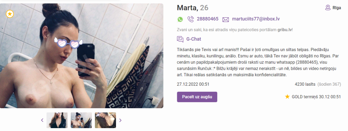 Nu zin kā, es ja būtu tik naivs, es jau sazinātos. Vienkārši dīvaini, dāma jeb bildes tiek sludinātas jau ilgu laiku, bet nekad nav nekas bijis forumā. Šis var būt arī kā noderīgs brīdinājums tiem naivajiem, kas meklēs info forumā.