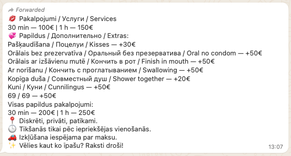 Ir būts dažādos laikos ,kādas 3x...nekad nav bijusi vilšanās sajūta,Samanta ir profesionāle laba nozīmē protams ja Tu nemeklē 20 gadīgu modeli..bet patīkamu atpūtu 😉