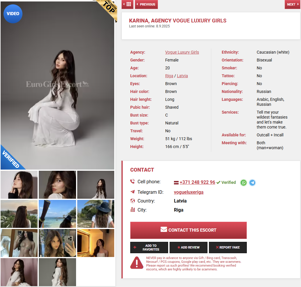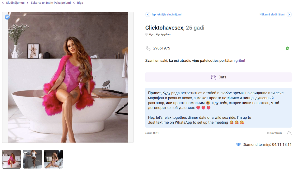 Paprasi lai īstās bildes atsūta, jo sludinājumā ir fake. Šāda līmeņa sievietes pie mums nebrauc, jo viņas izvēlēsies maukt uz Rietumeiropu vai UAE utml.