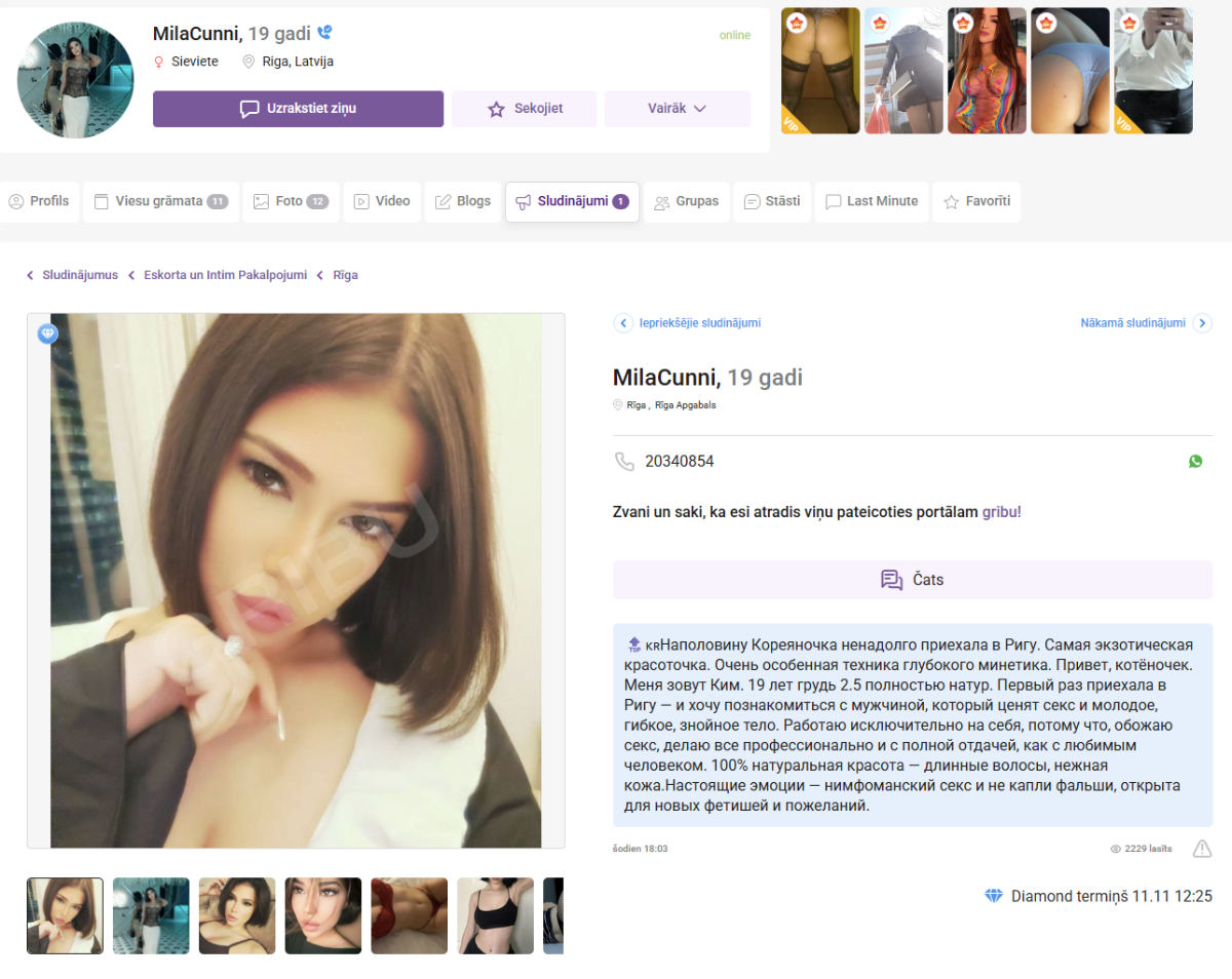 Насчёт этой - по фото соответствует, только я пришёл увидел её и ушёл, т.к. написали мне про одни допы, а в реальности она ничего не предлагает кроме классики. Хотя может чего и изменилось, посещал в июле тогда предлагала свои услуги на Dainas iela
