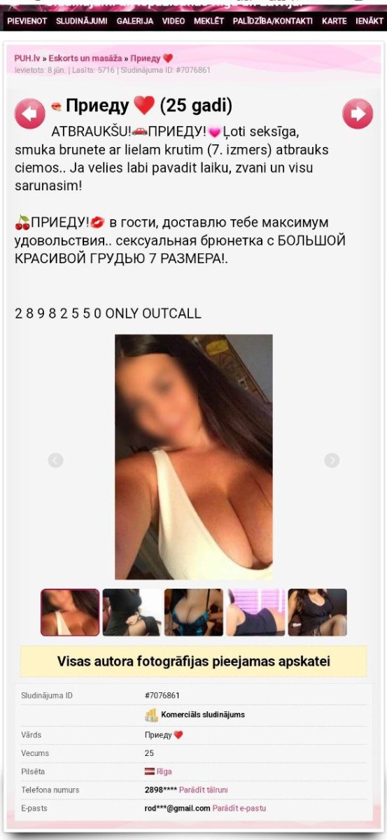 MarupeX 3 Ierakstīts 2023. gada 18. jūnijs Приеду♥️ (25) 28982550 Ierakstīts 2023. gada 18. jūnijs Приеду ♥️ (25 gadi) 28982550 Vai ir kada atsauksme? Izbrauc,prasa 150€ stunda un par taksi. Link to post
